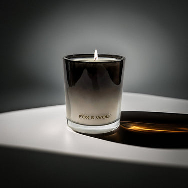 Onze kenmerkende FOX & WOLF verpakking heeft een diep, inktzwart canvas, ontstoken met rauwe, textuurrijke streken van koper en wolk.