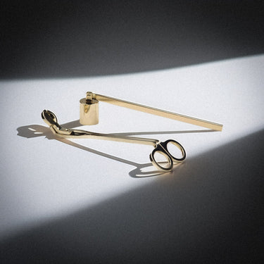 Introducing our Candle Care Set, featuring an exquisite gold wick trimmer and snuffer.